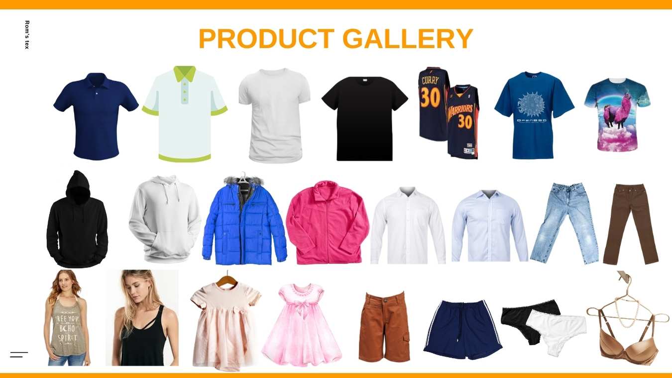 We produce all kinds of Men's, Women's and kid's garments with Knitwear, Sweater and woven.